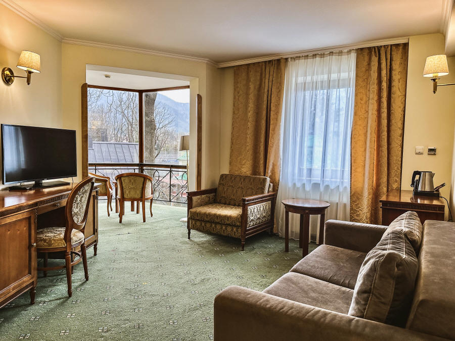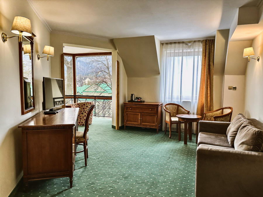 сямейных нумароў і люксаў, з большасці вокнаў якіх адкрываецца выдатны від на Татры і Гевонт - узімку вы можаце атрымліваць асалоду ад снежнымі вяршынямі, а летам - зялёнымі краявідамі. Прыемны