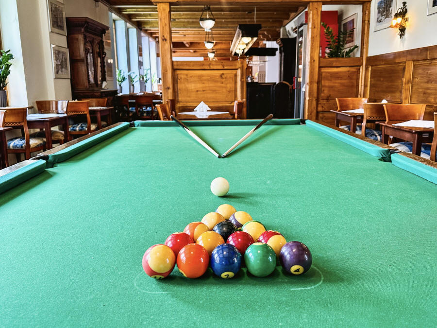 У нашым лобі вы можаце бясплатна гуляць у більярд,